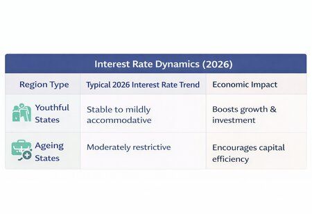 Youthful states generally benefit from moderating or declining interest rates in 2026, enabling: