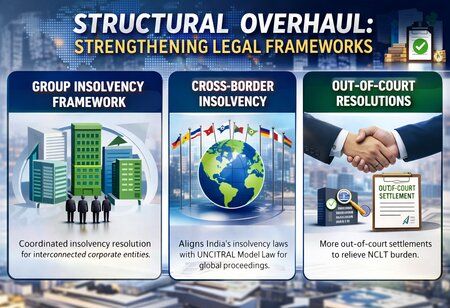 The introduction of a Group Insolvency Framework, which allows interconnected corporate entities to be resolved in a coordinated manner, is one of the most important changes. This encompasses a common adjudicating bench and shared resolution professionals to avoid the fragmentation of proceedings and erosion of values.