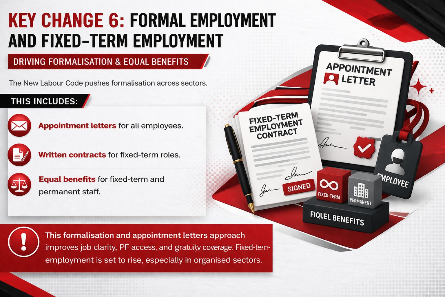 Lastly, employees must be provided with a formal appointment letters and written contracts for fixed term role to boost transparency: